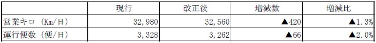 ・今般のダイヤ改正により、令和3年4月改正時(▲2.6%)とあわせて合計3.9%の削減となる見込。