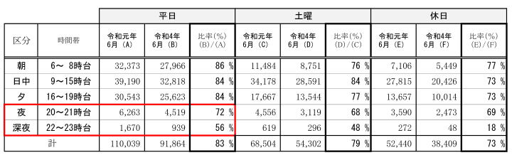このため、令和5年4月のダイヤ改正において、今年度の利用状況を踏まえ、次の考え方に基づき便数調整等を行います。