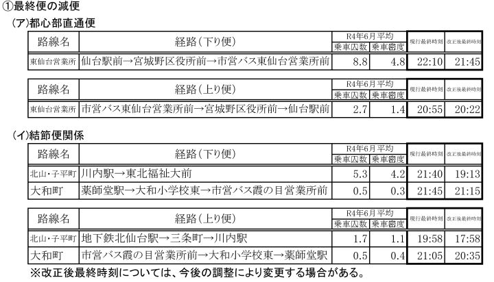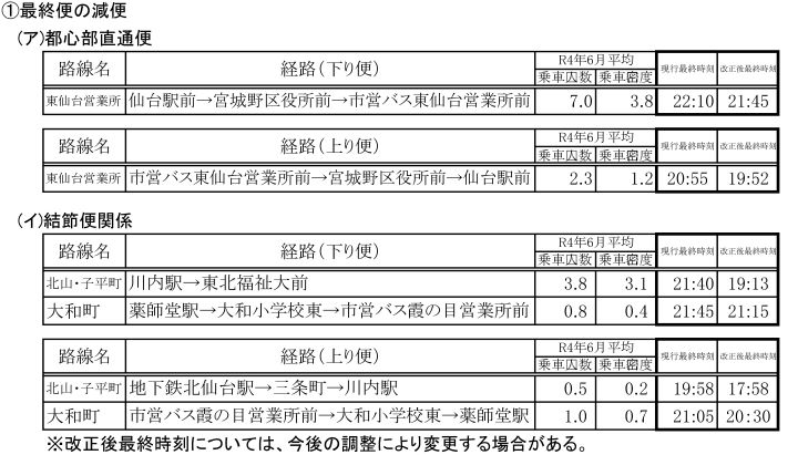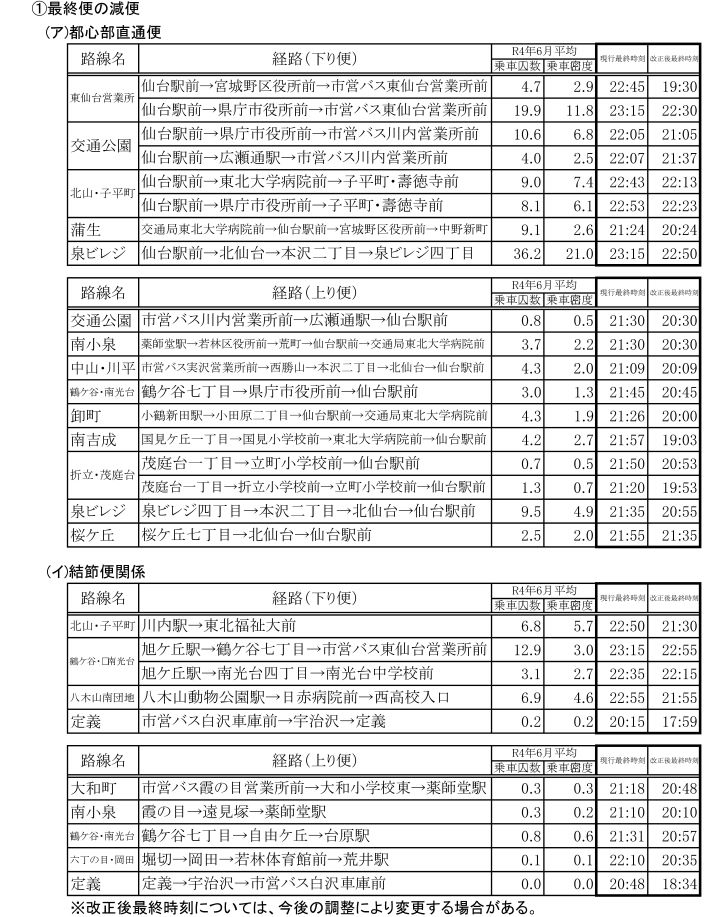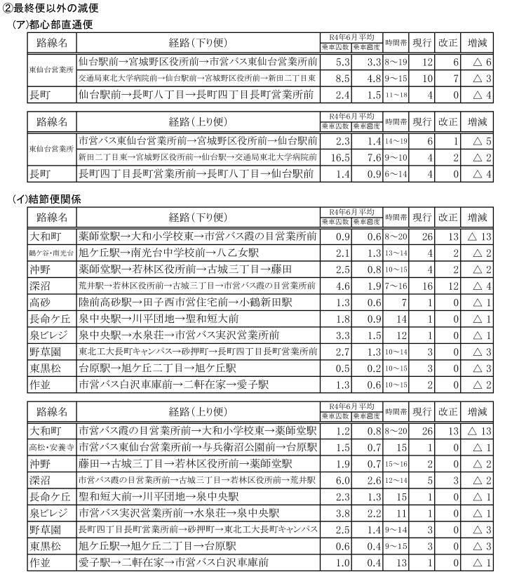 ・全時間帯の便数調整(全時間帯において、利用状況に応じた減便を行います。)