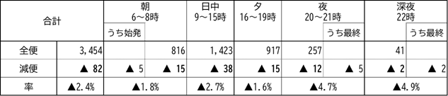 <主な便数調整> 下表のPDF版はこちらをクリックすると表示されます