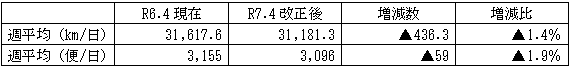 2 令和7年4月ダイヤ改正による1日あたり営業キロ・便数の変化(予定)