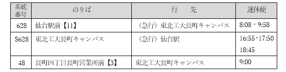 春季学校休校に伴い、停留所時刻表の下線付き時刻便を運休いたします。東北工大長町キャンパス関係