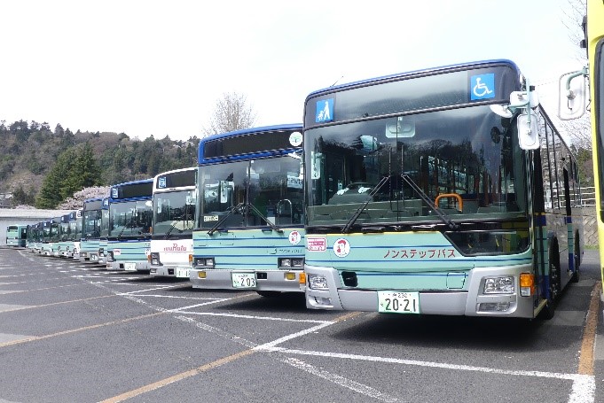 行管理及び整備管理業務を民間バス会社に委託しています。民間に委託できる事業量は全体の50%以内と国で定めており、下記の営業所、出張所が担当する路線(令和4年1月時点で全事業量の49.1%)を民間バス会社に委託しています。
