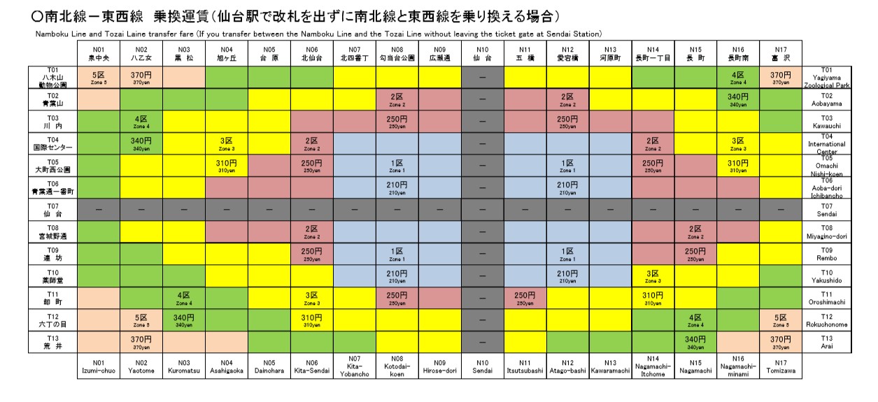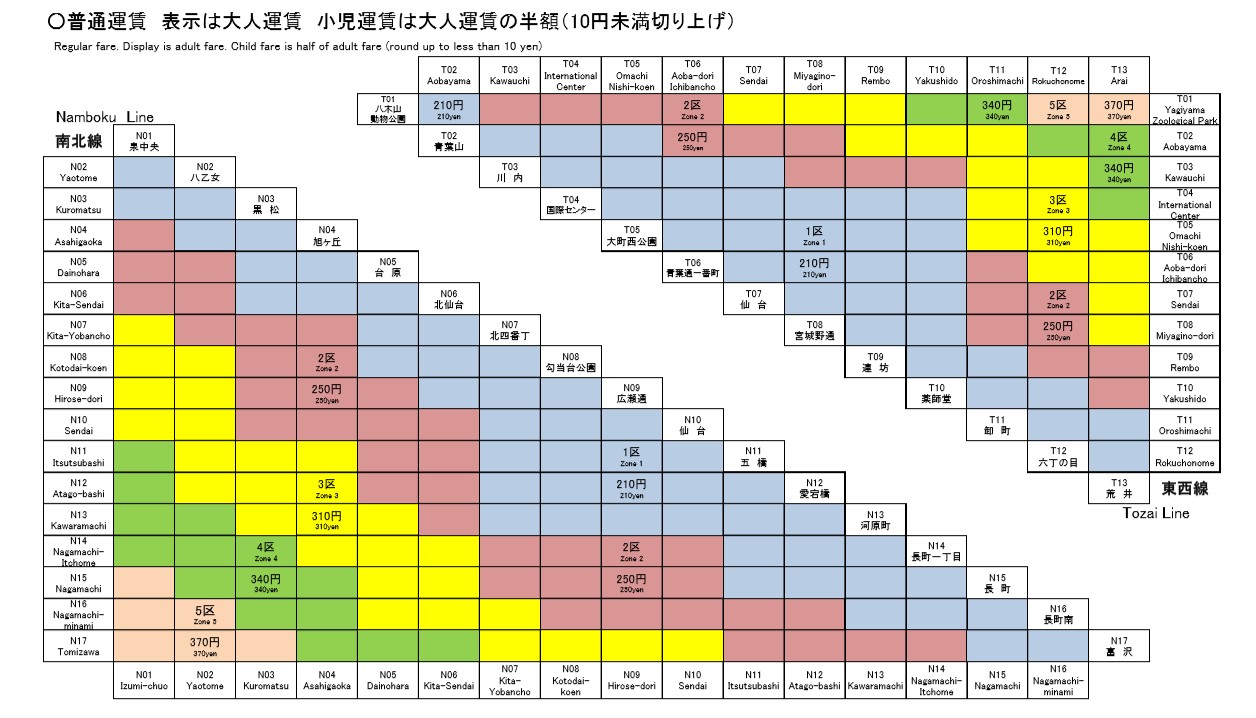 一部「120円パッ区」「東西線結節駅周辺バス100円均一運賃」などの均一運賃区間があります。 - 仙台駅からの主要区間における片道運賃(五十音順)(PDF:68KB)