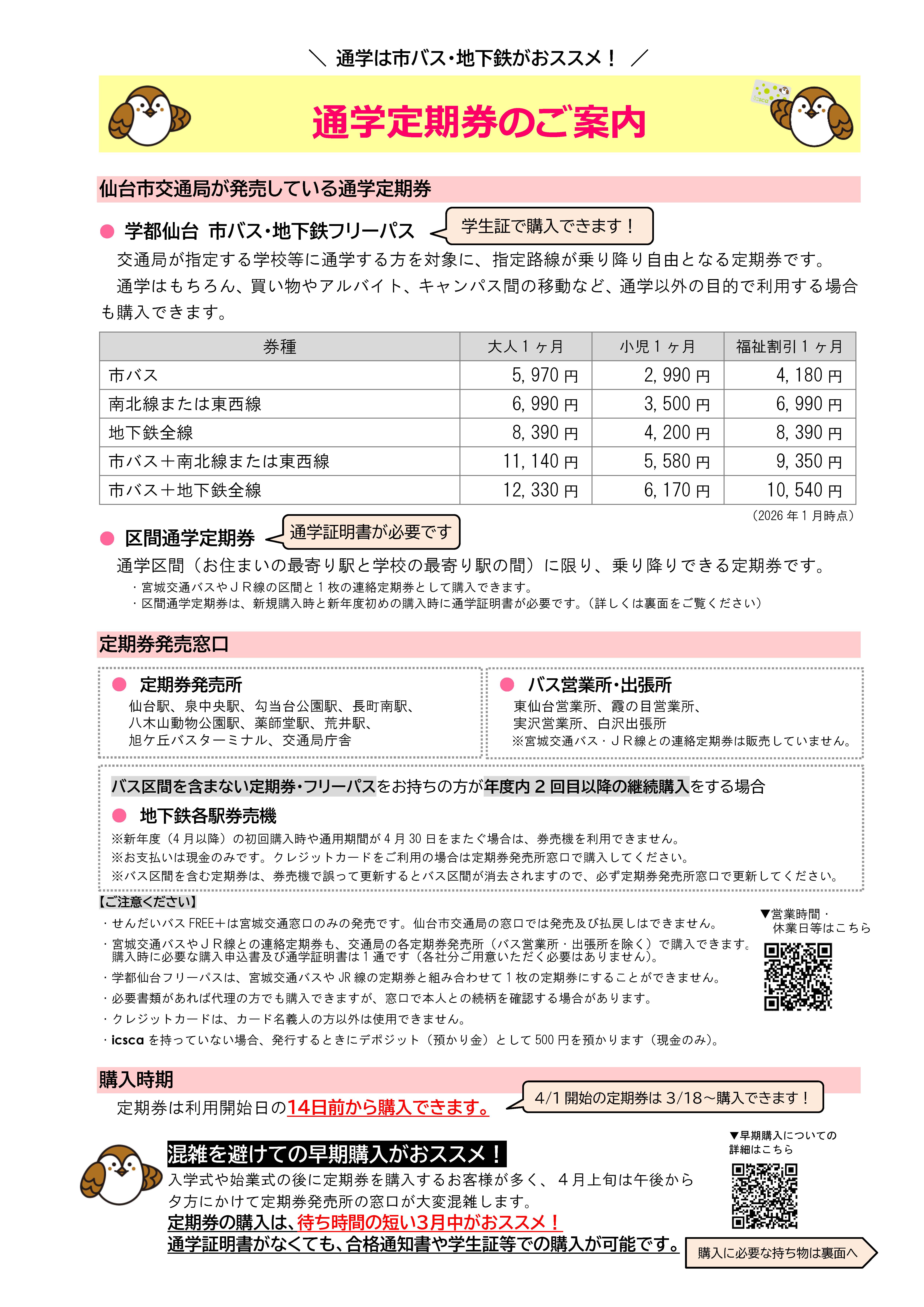 通学定期券の早め購入で混雑緩和にご協力ください!(令和8年3月4日更新)