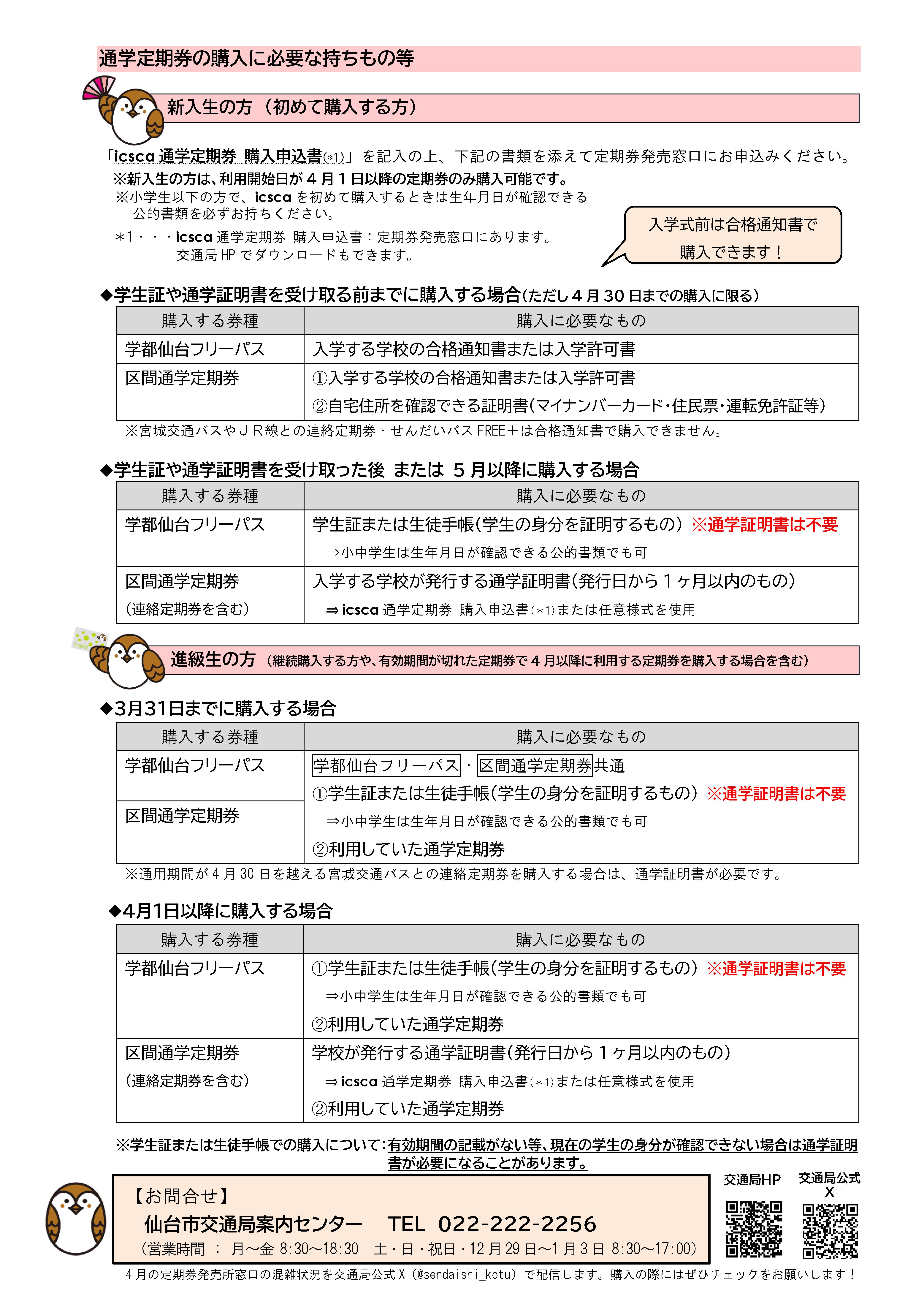 - 宮城交通バスやJR線との連絡定期券は合格通知書等で購入できません。