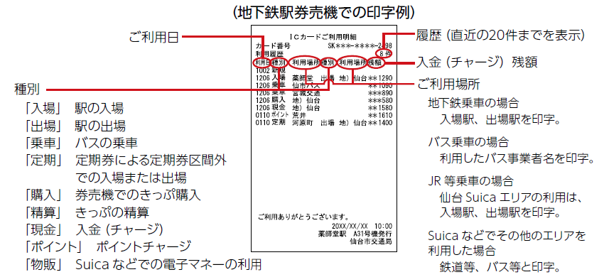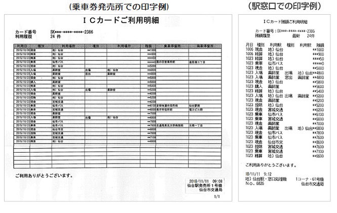 ※icscaの直近20件までのご利用履歴は、仙台SuicaエリアのJR線・仙台空港アクセス線の券売機でも表示・印字することができます。
