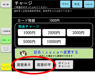 地下鉄駅券売機での履歴表示・印字