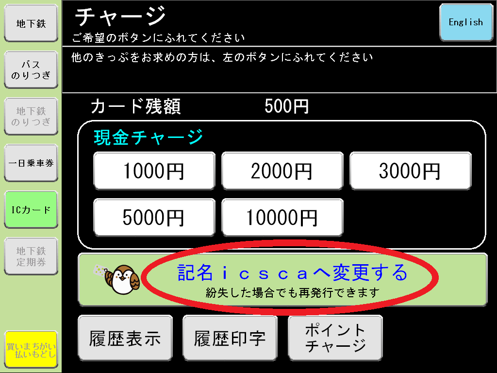 ※有効期限を過ぎた小児用icscaは地下鉄駅券売機でも変更できます。ただし、定期券が有効期間内の場合は、地下鉄駅券売機で変更できません。