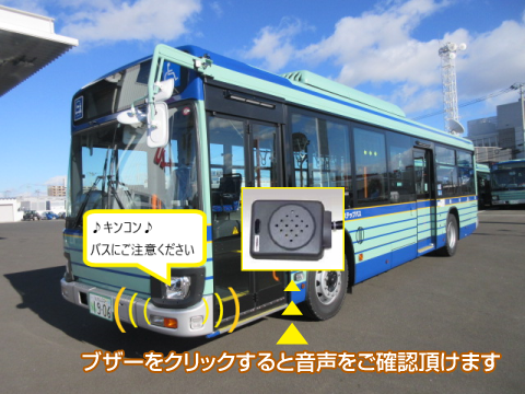 ※1自転車・歩行者に対し、優しい音声でバスの接近をお知らせするシステムです。クラクションによる警告ではなく、声で注意を惹くことで事故やクレームの減少を目指します。