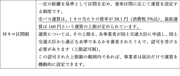 市バスの運賃は、「対キロ区間制」が適用されています。