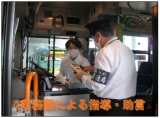 本局自動車部、業務課職員及び営業所の管理要員が事故惹起者、苦情惹起者、採用後1年未満の乗務員及び各研修受講終了者等に対し事故及び苦情等の再発防止を目的として、運転操作や接客案内の状況を把握し適切な指導を行うため、自動車運転者添乗指導要領に基づき添乗指導を実施しました。