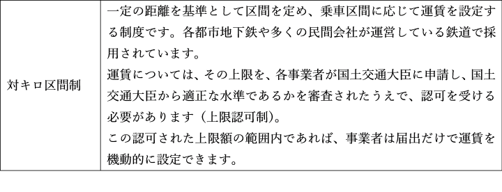 (注)この他に、区間によって加算運賃、特定区間運賃、連絡運賃が存在する。