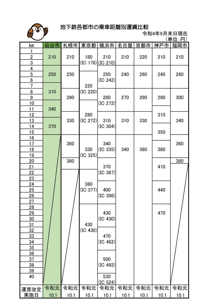 仙台市地下鉄は、他の地下鉄より運賃が高いって本当?