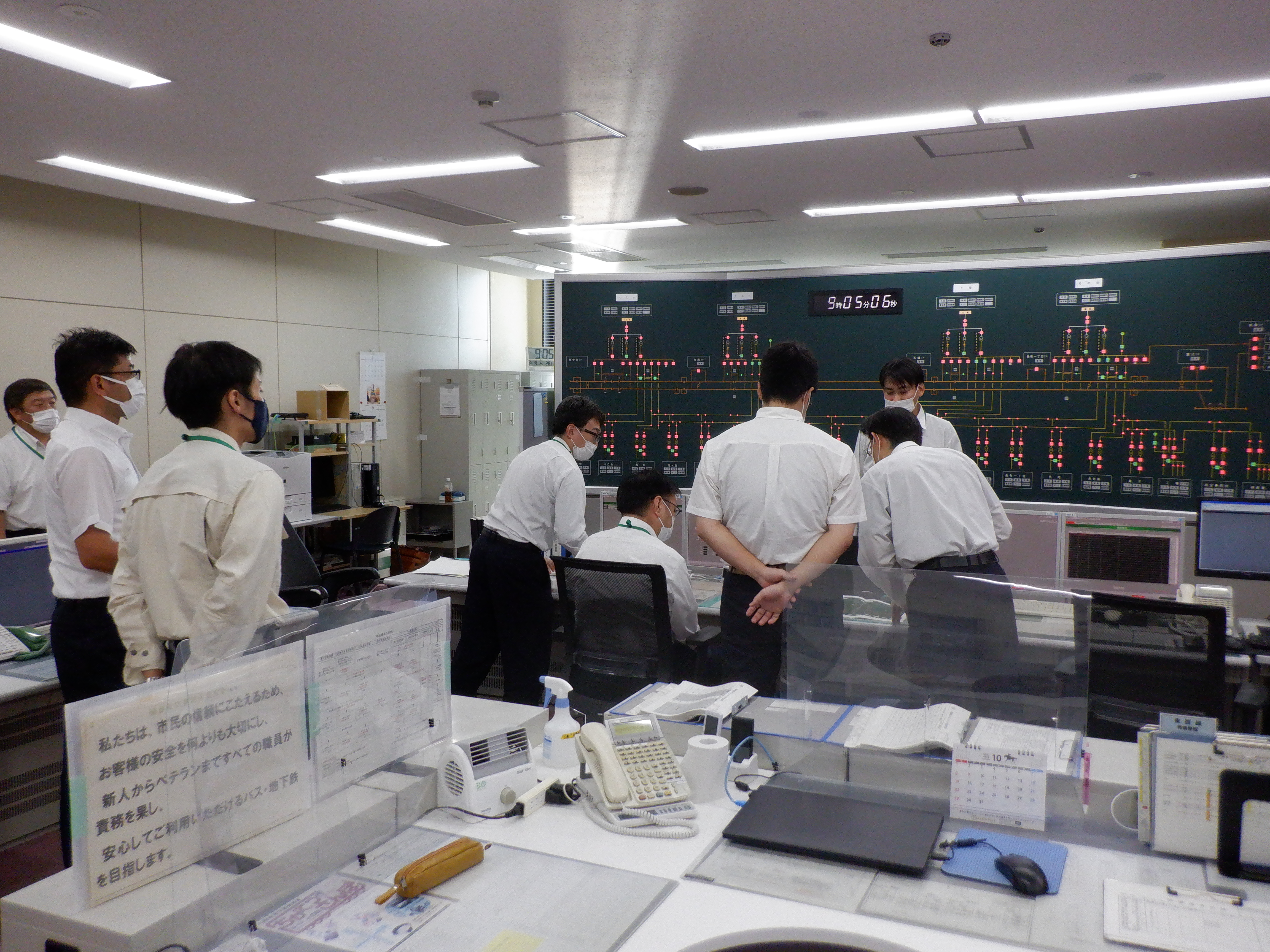 令和5年度は,地下鉄の異常時におけるお客様への案内放送を,臨機応変に実施できることを身に付けるために,研修用DVDを活用し,グループワークによる研修を行いました。