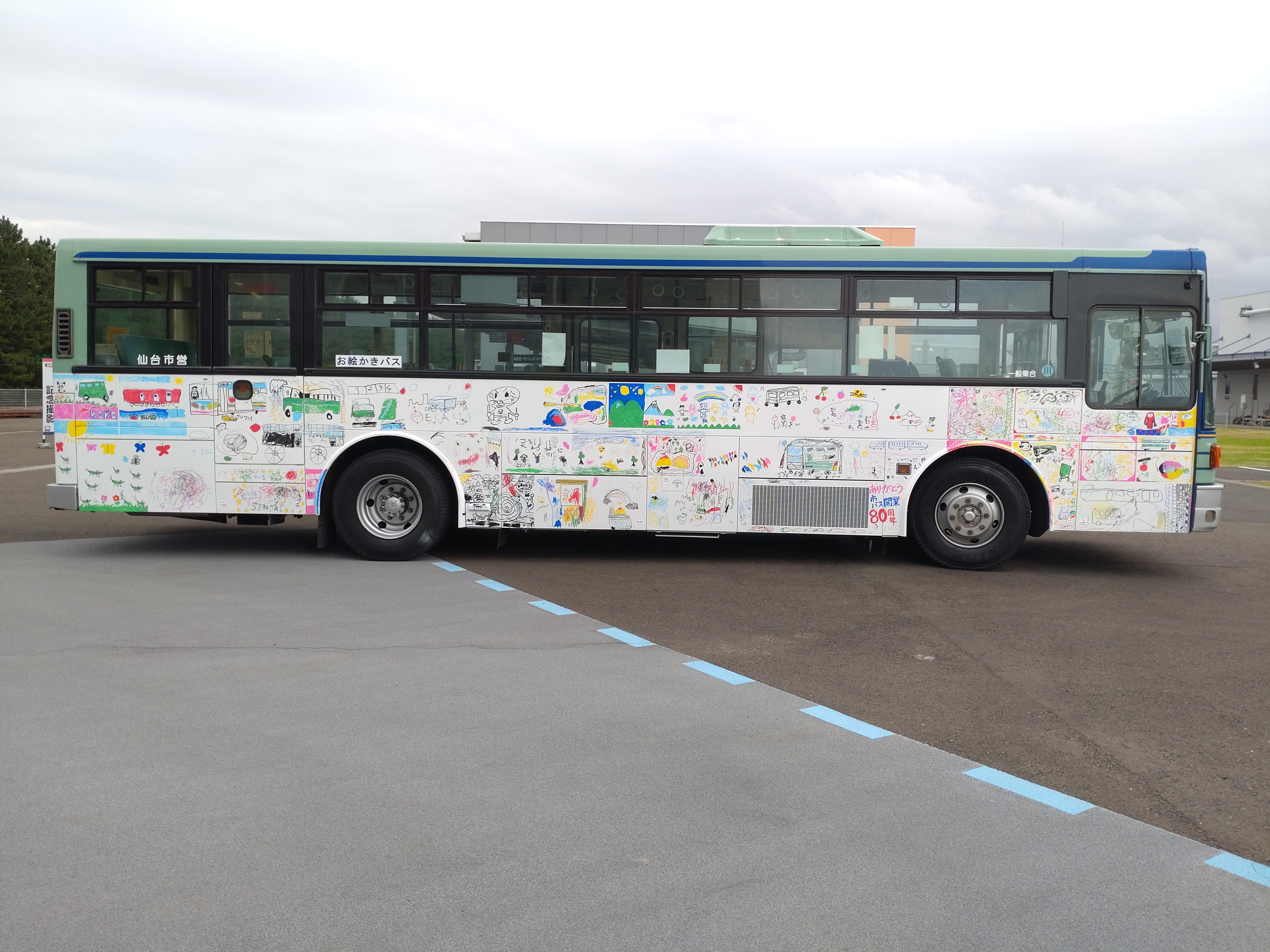 みんながお絵描きしてくれたバスは、10月19日(水)から仙台市内の路線を運行しています!