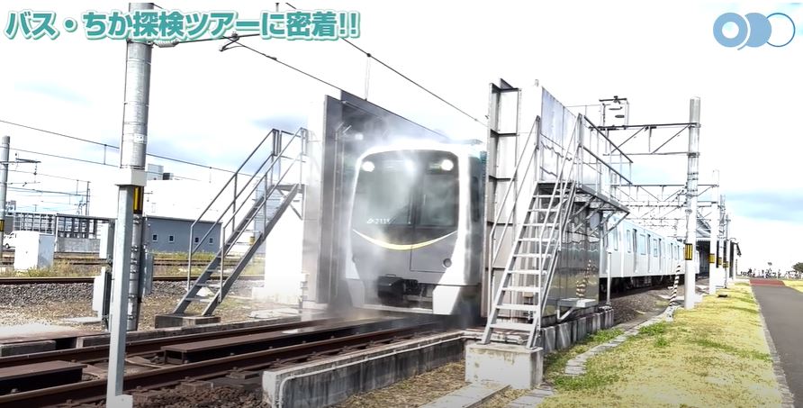 大きな車体が洗車される様子を乗車して中から体験!
