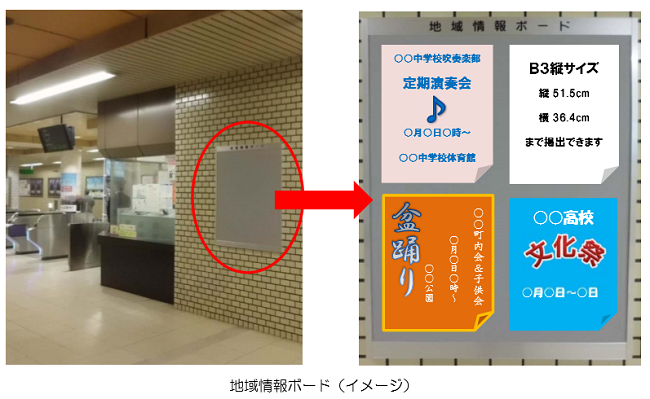交通局では、地下鉄南北線と東西線の各駅構内に設置している地域情報ボードについて、より多くの方にご利用いただけるよう平成29年1月4日付で掲出基準を一部改正しました。