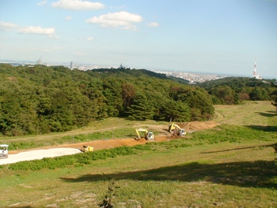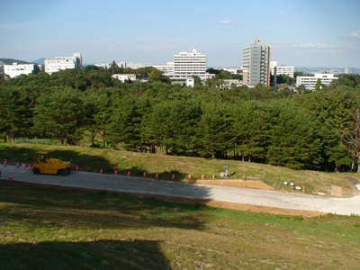 旧ゴルフ場内のフェアウェイ上に建設中です。