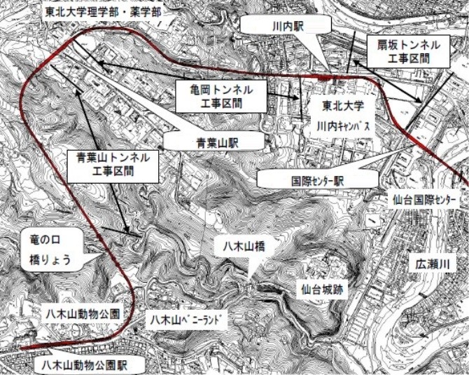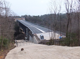 八木山側からの全景写真です。 青葉山側からの全景写真です。 青葉山側の工事用道路の撤去復旧が完了した様子です。