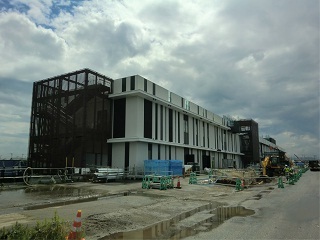 工事中の駅舎の屋上の様子です。 1階(改札階)の工事の様子です。 地下1階(ホーム階)の工事の様子です。 工事中の駅舎の全景(北側)です。 工事中の駅舎の全景(南側)です。 引き続き、建設工事及び設備工事を進めていきます。