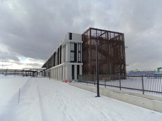1階(改札階)コンコースの様子です。 地下1階(ホーム階)の様子です。 工事中の駅舎の外観(南東側)です。 工事中の駅舎の外観(南西側)です。 引き続き、建設工事及び設備工事を進めていきます。