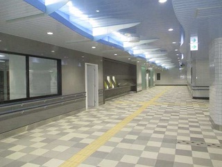 地下2階 駅務室・改札口前スペース壁面の様子です。