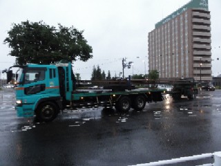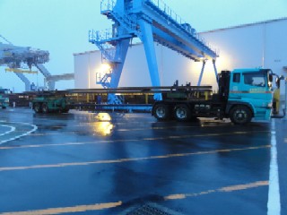 今回搬入されたレールは、広島県福山市で製作したものを船で仙台港まで運搬し、トレーラーに積み替え、各搬入現場へ運搬します。