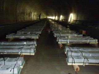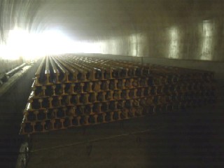 投入されたレールがトンネル内に貯蔵されている様子です。